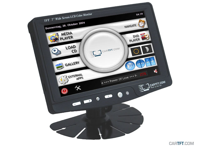 The device has integrated Stereo-speakers, a rear camera input and the dimmer button in the front will enable perfect viewing pleasure also during the night.